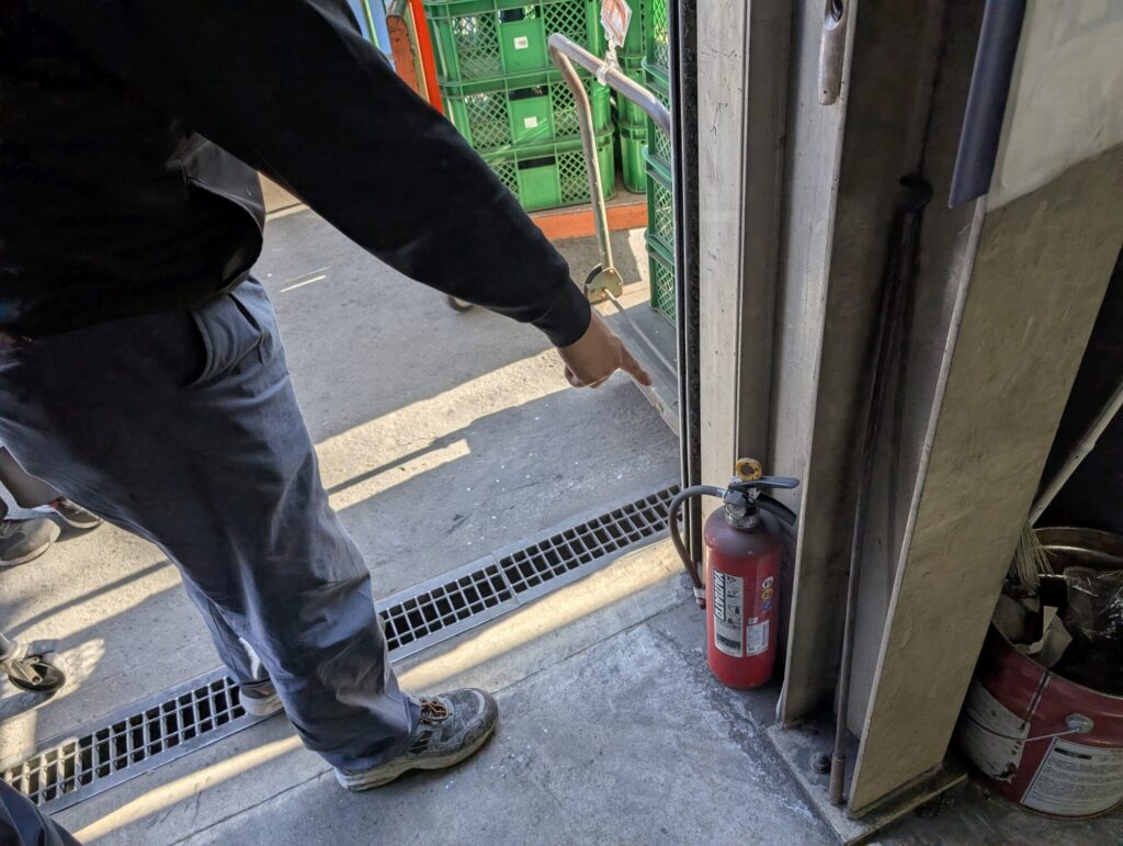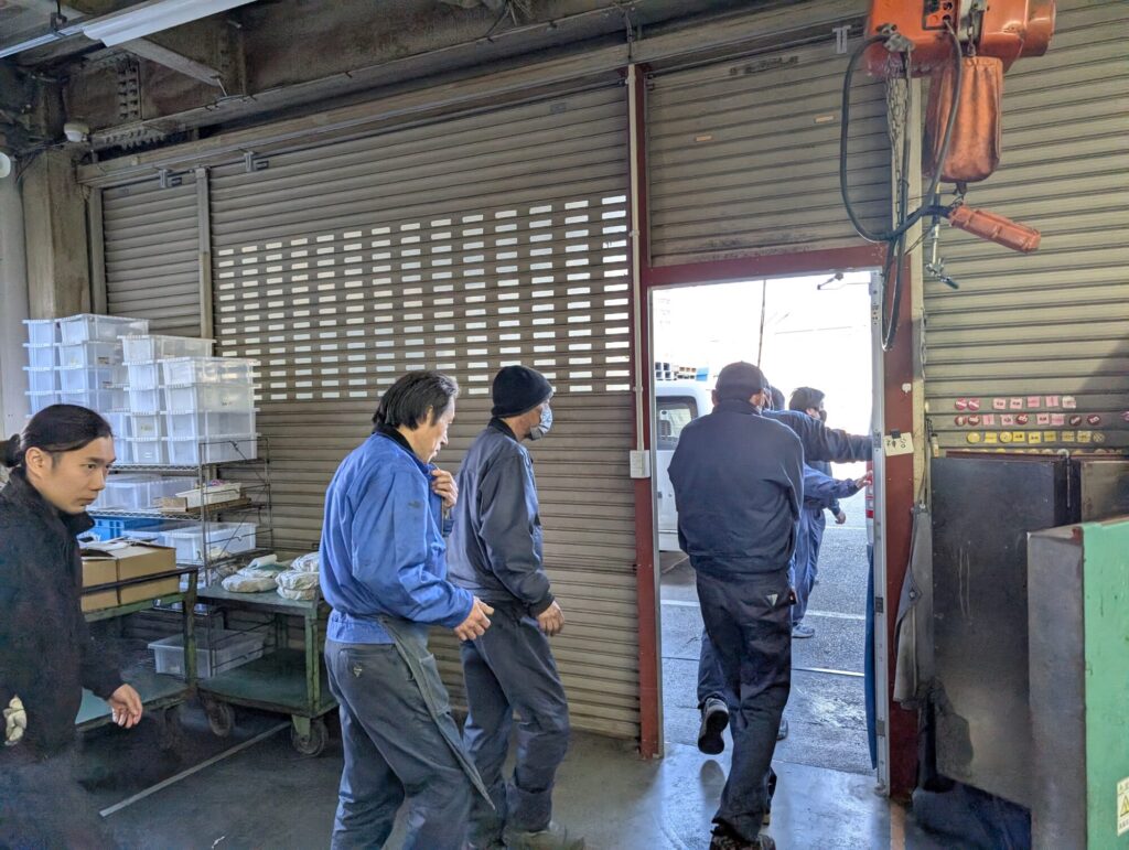 訓練放送を聞いた後、一時避難場所へ避難する様子