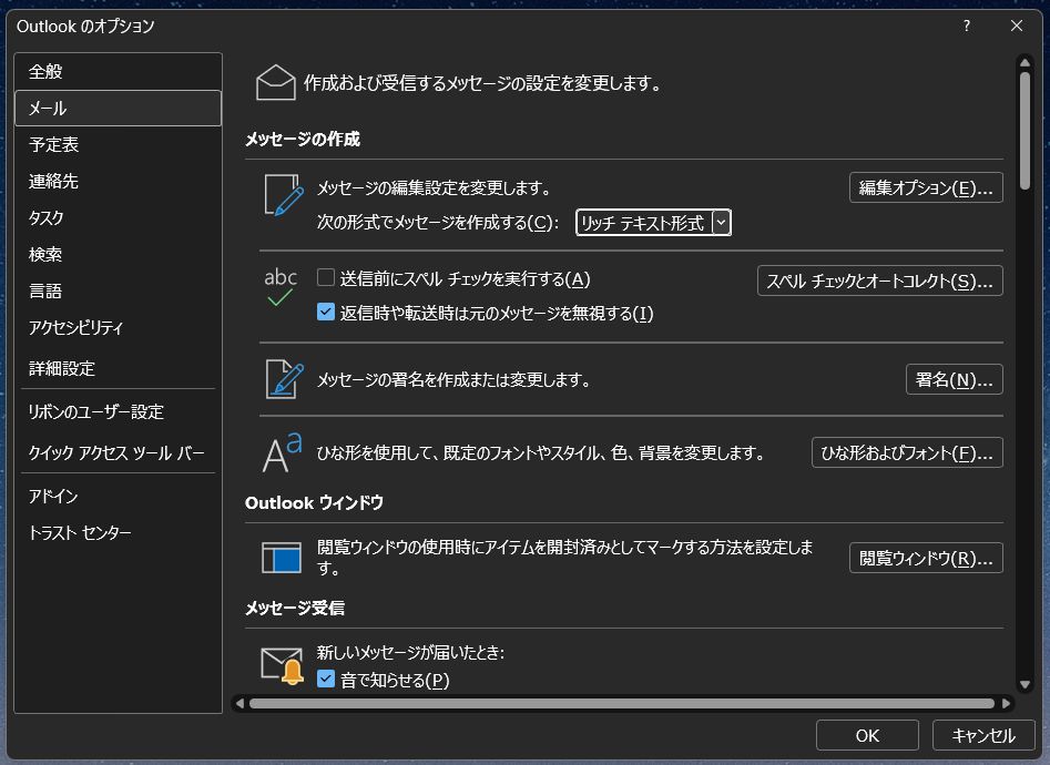 メッセージの作成 → 次の形式でメッセージを作成する(C)