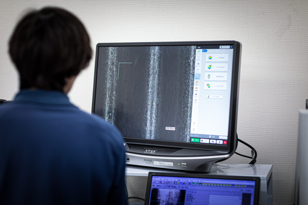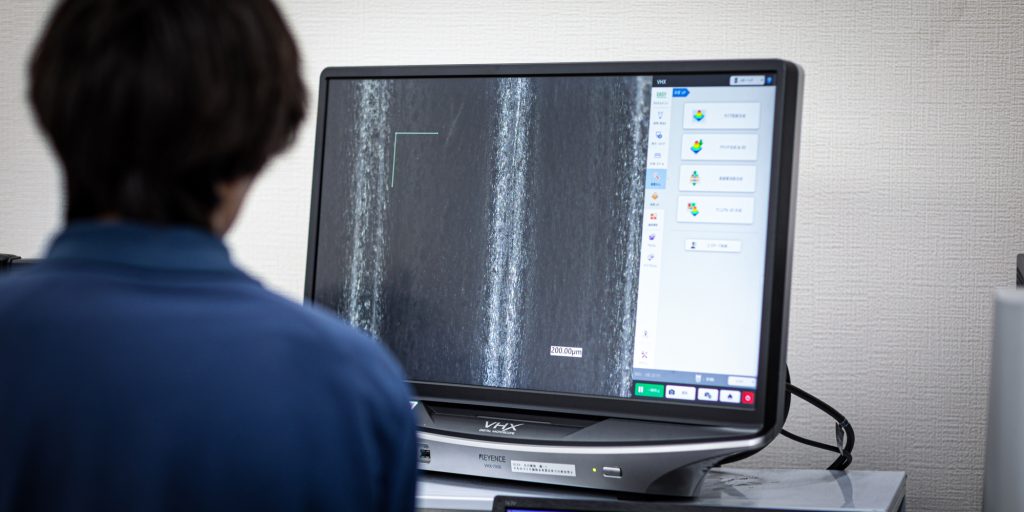 バフ研磨をして鏡のように綺麗に磨かれていても、凹凸を見るための分析機器(マイクロスコープ)で分析すると心電図の様に上下に振れたグラフが出てきます。